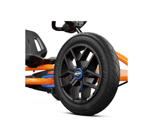 De stoel van de BERG Buddy B-Orange kan eenvoudig worden aangepast aan de lengte van je kind. Dit zorgt ervoor dat de skelter meegroeit met je kind, zodat ze altijd comfortabel zitten en de trappers goed kunnen bereiken. De stoel kan in drie verschillende standen worden versteld, wat de Buddy perfect maakt voor kinderen van verschillende lengtes. - Luchtbanden voor extra comfort