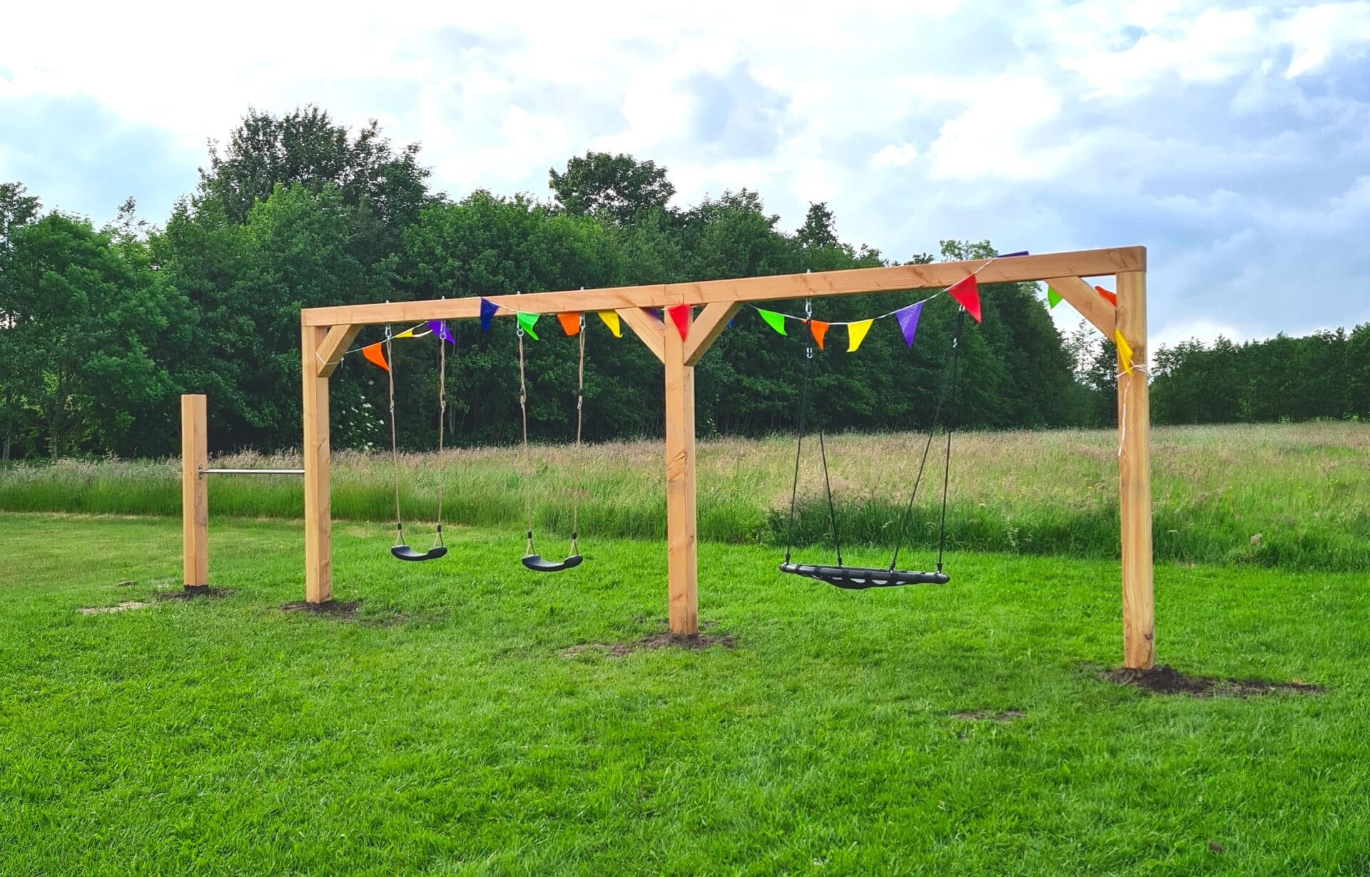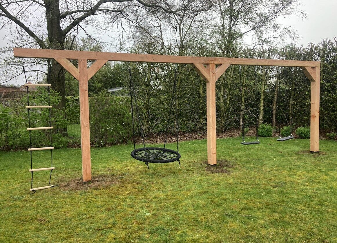 - Benodigde vrije ruimte rond schommel: In de schommelrichting aan beide zijden minimaal 2 meter vanaf de bovenbalk.