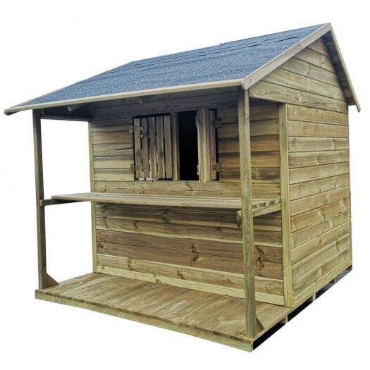 Dit compacte houten buitenspeelhuis is perfect voor kleinere tuinen of als eerste speelplek voor jonge kinderen. Dankzij de charmante veranda, grote vensterbank en luikjes kunnen kinderen hun fantasie de vrije loop laten, bijvoorbeeld door het spelen van winkeltje.