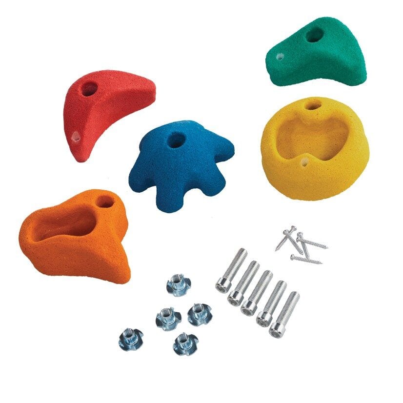 - Klimstenen: Geel-rood-blauw-oranje-groen (elk set bevat 5 stenen met deze 5 kleuren)