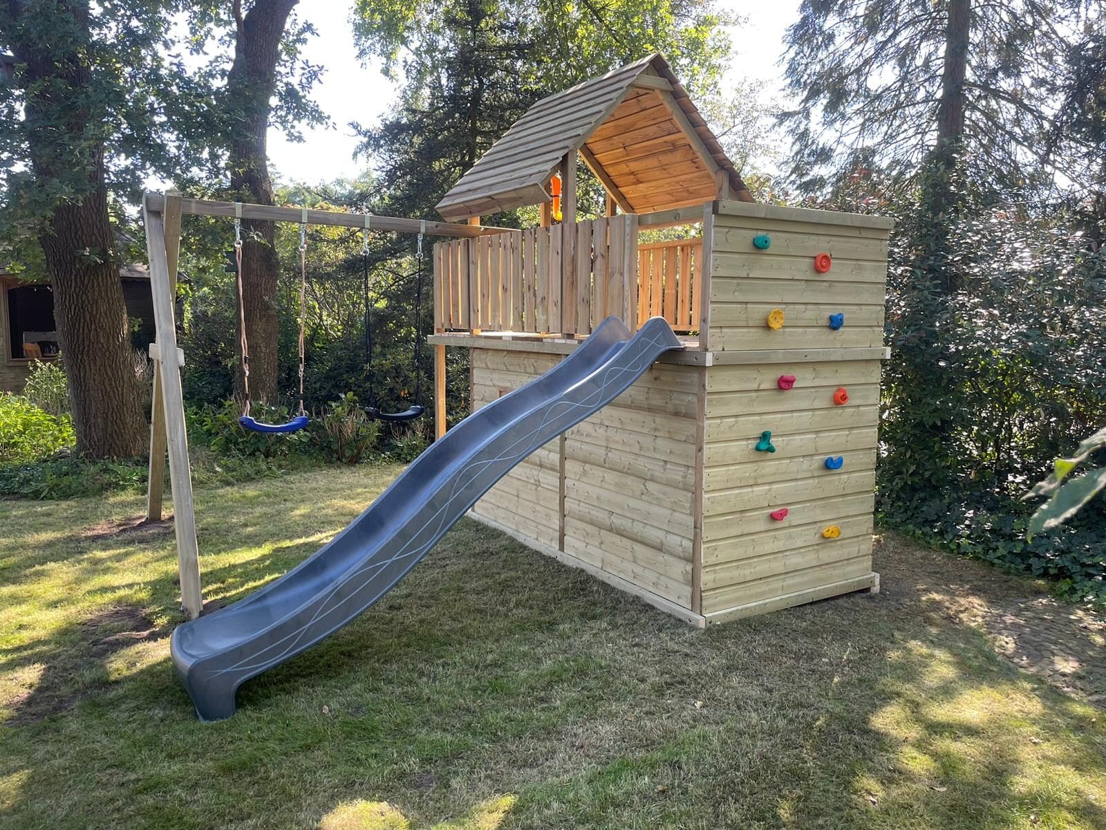 De klimwand is vervaardigd uit duurzaam geïmpregneerd hout, waardoor hij uitstekend geschikt is voor buitengebruik in alle seizoenen. Dankzij het slimme ontwerp is de wand eenvoudig te bevestigen aan verschillende Multi-Fun speeltoestellen, zonder dat er extra ruimte in de tuin nodig is. Zo breid je het speelplezier moeiteloos uit met een sportieve en speelse uitdaging.