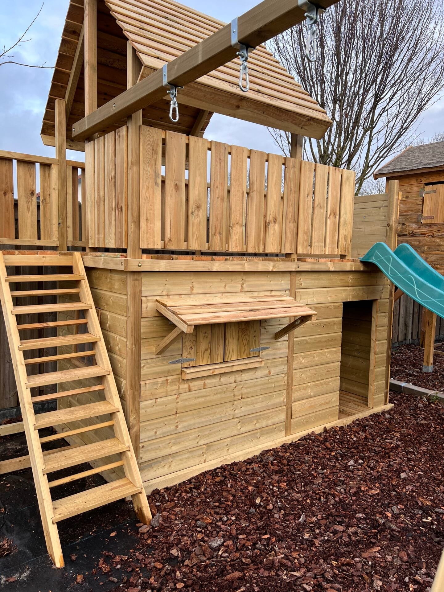 Maak van het speelhuisje onder het Multi-Fun speeltoestel een echte winkel of kiosk met de Multi-Fun Shop. Deze set bestaat uit een luifel en vensterbank (balie/verkoopwandje) en is speciaal ontworpen om te passen op het paneel met raamopening XL. Zo ontstaat een sfeervolle en interactieve speelplek waar kinderen eindeloos kunnen fantaseren en rollenspellen kunnen spelen.
