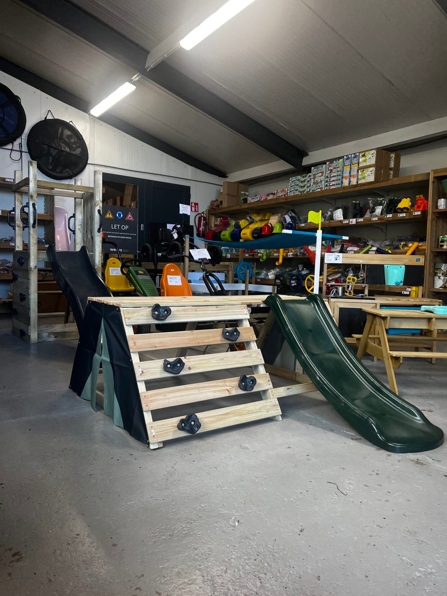 - Inclusief glijbaan, klimstenen, klimnet en speelse doeken